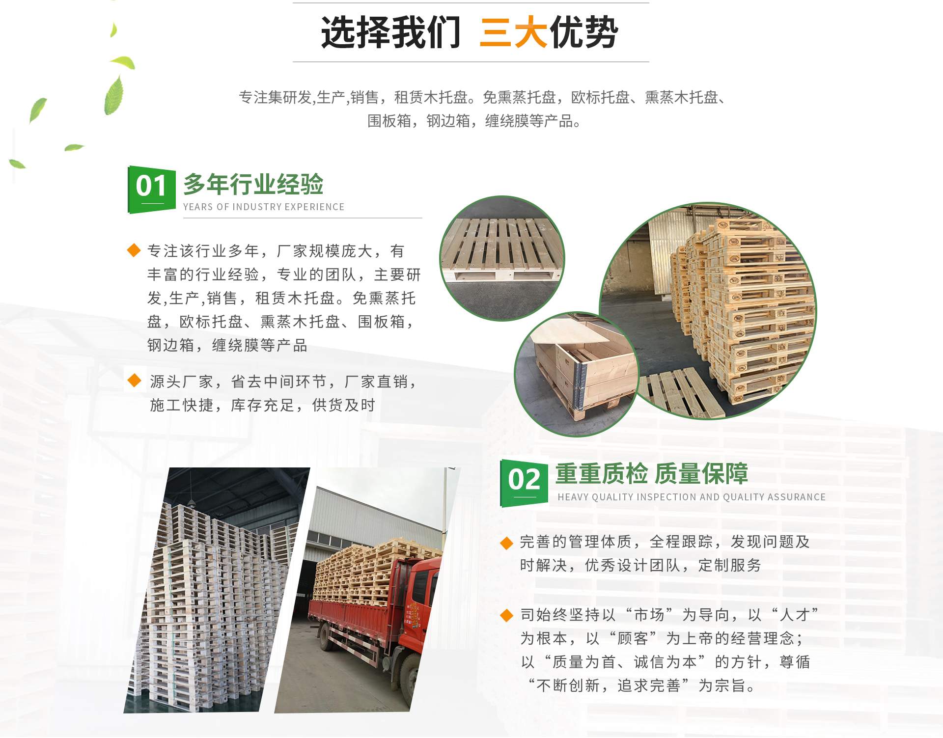 蕪湖奔騰包裝股份有限公司坐落于滬渝高速灣沚出口處3公里,距離灣沚高鐵站6公里,蕪宣客運(yùn)機(jī)場(chǎng)5公里,交通十分便利。我公司是專注集木托盤研發(fā),生產(chǎn),銷售,租賃的綜合服務(wù)商。本公司生產(chǎn)的免熏蒸托盤,歐標(biāo)托盤、熏蒸木托盤、圍板箱,鋼邊箱等產(chǎn)品遠(yuǎn)銷海內(nèi)外。公司本著“以質(zhì)量求生存,以信譽(yù)謀發(fā)展,以服務(wù)拓出路”的服務(wù)經(jīng)營(yíng)理念;重視產(chǎn)品質(zhì)量和服務(wù),為用戶著想。根據(jù)客戶需求,及時(shí)送貨。公司始終堅(jiān)持以“市場(chǎng)”為導(dǎo)向,以“人才”為根本,以“顧客”為上帝的經(jīng)營(yíng)理念;以“質(zhì)量為首、誠(chéng)信為本”的方針,尊循“不斷創(chuàng)新,追求完善”為宗旨。本著生產(chǎn)廠家,減少中間流通環(huán)節(jié)的原則,讓利于每位客戶朋友。我們的產(chǎn)品價(jià)格合理,質(zhì)量過(guò)硬,真誠(chéng)歡迎各方客商前來(lái)業(yè)務(wù)洽談與合作。